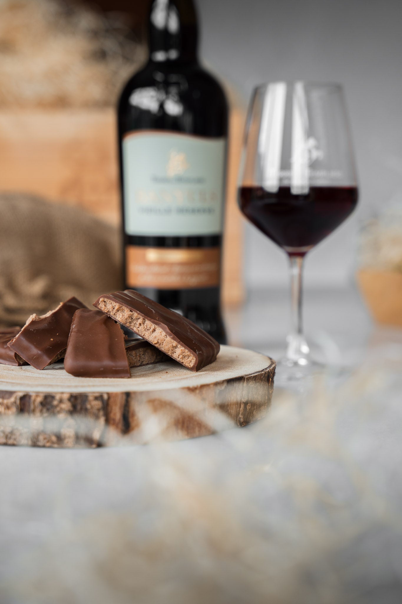 Its notes of candied fruit, nuts, and caramel blend divinely with dark praline chocolate . The crunch and sweetness of the praline enhance the hazelnut and spice aromas of the wine, for a rich and captivating experience. A pure moment of indulgence to share!